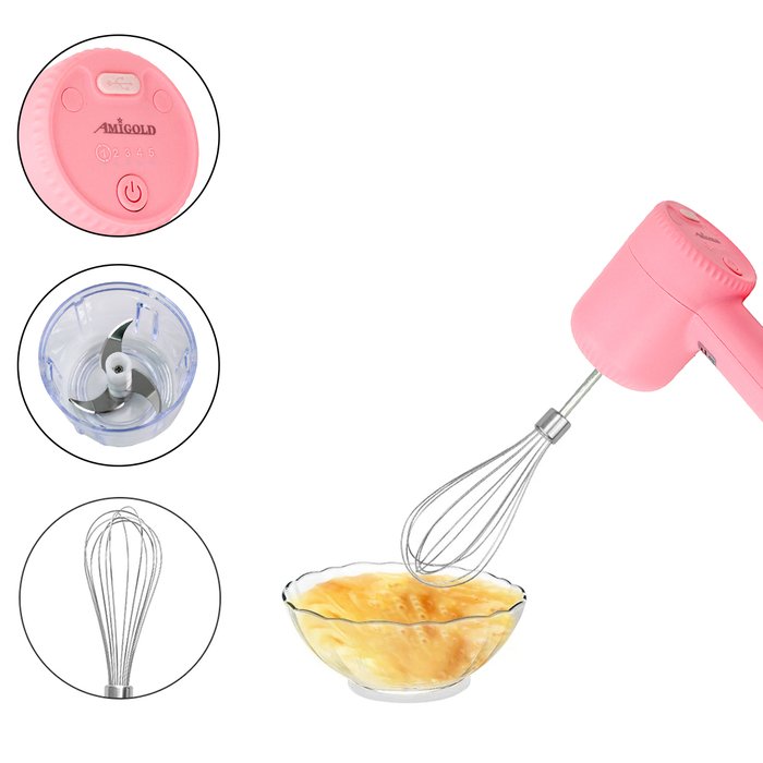 Batedeira Triturador Elétrico e Processador por Usb:rosa