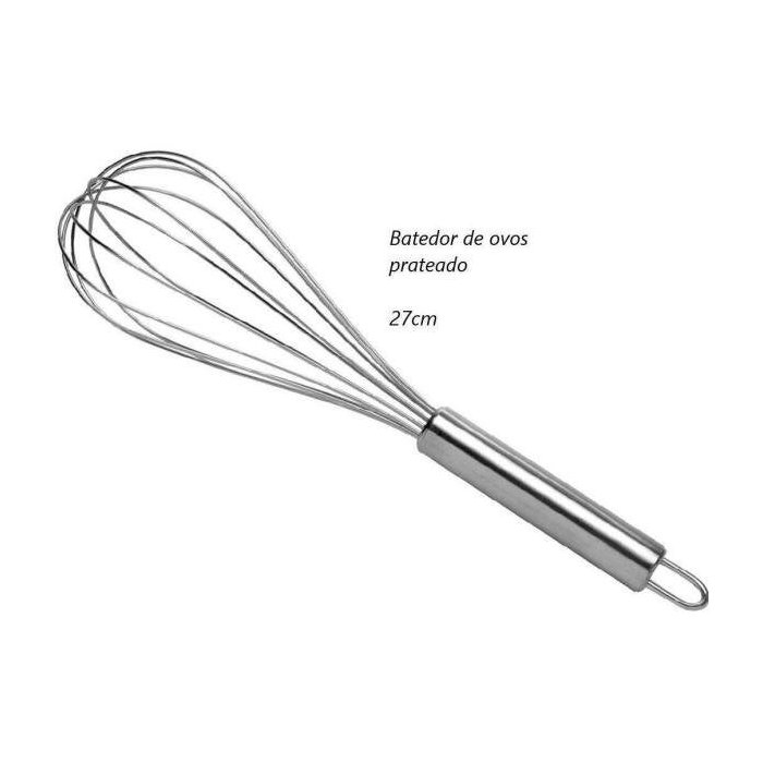 Batedor De Ovos Fouet Profissional Prateado De Aço Inox 27cm