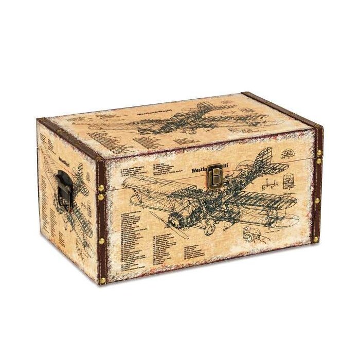 ^Baú Avião Médio O toque de atitude e estilo que faltava na sua decoração. Baús são peças decorativas cheias de personalidade e que dão um ar de inovação e jovialidade ao seu espaço. O baú estampa aviões tamanho médio é multifuncional. É um objeto decorativo que também auxilia na organização da casa. Para guardar objetos ou colocar fim na bagunça, é uma escolha excelente. Tem acabamento em estilo industrial, com estampa retrô. Fica lindo em uma estante ou sobre uma mesa de canto. O baú é feito em MDF revestido em canvas impresso. Ótima opção para salas e quartos. Material: MDF Acabamento: Canvas Dimensões (LxCxA): 26 x 40 x 21cm Uso: Interno Gostaria de conhecer melhor esse produto e suas funcionalidades? Entre em contato com a Mosaico Decora!