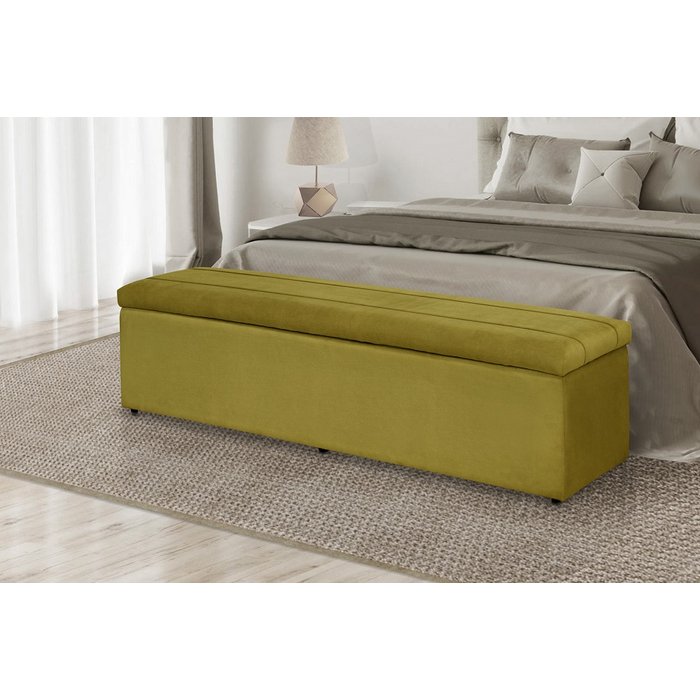 Baú Calçadeira 100cm Suede- Aliw Decor: Suede Amarelo Suede Amarelo