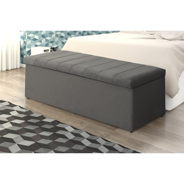 Baú Calçadeira Estofada Vitória Cama Box Casal 140cm Suede- Aliw Decor: Suede Cinza Suede Cinza