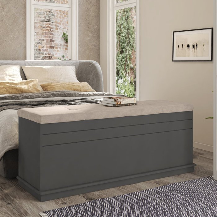 Baú Calçadeira Recamier Tampo Estofado e Revestido com Capitonê Gênova II
