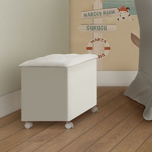 Com amplo espaço interno o Baú Elô possui estrutura 100% MDF, acabamento em pintura UV, tampo com estofamento capitonê em tecido corino ou suede, 04 rodízios (sendo 02 com travas) e abertura feita por pistão a gás e dobradiças metálicas. Perfeito para compor o quartinho do seu bebê.