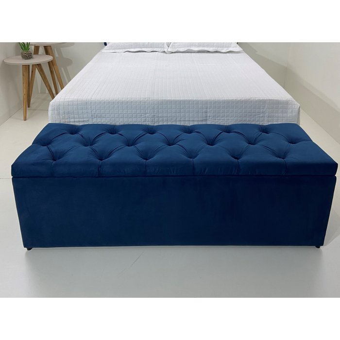 Baú Estofado Casal Modelo em Capitonê 140x50x45cm Azul Marinho - Materiais de Alta Qualidade