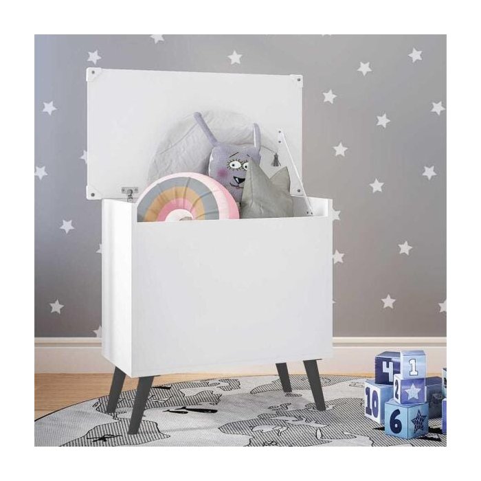 ^O Baú Organizador Caixa de Brinquedos Retrô Multimóveis é produzido em MDP com acabamento acetinado (cerca de 20% de brilho), que garante maior durabilidade, resistência e facilidade na limpeza. Com amplo espaço interno para organizar brinquedos ou outros pertences, ele suporta até 15kg e, para maior segurança, o articulador da tampa possui trava, para evitar acidentes. Os pés retrô, em polipropileno, dão um charme especial ao móvel deixando-o com um visual leve e permitindo você compor um ambiente com ar vintage e moderno ao mesmo tempo. Conteúdo da Embalagem: 1 (um) baú 1 (um) kit com 4 pés retrô Dimensões do produto montado: Altura - 65cm | Largura - 69cm | Profundidade - 39cm *Você pode consultar as medidas internas na imagem técnica do produto. Disponível em 5 opções de cores: Branco - Branco/Preto - Branco/Cinza - Branco/Rosa - Branco/Natural *As cores do produto podem sofrer variações de tonalidade de acordo com as configurações do seu dispositivo. Imagem meramente ilustrativa. Decoração não acompanha o produto. Produto NOVO - acompanha nota fiscal, manual de montagem e certificado de garantia. O produto será entregue desmontado e a Multimóveis não disponibiliza o serviço de montagem.