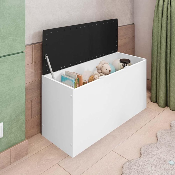 Bau Para Guardar Brinquedos Com Tampo Estofado Branco Framar