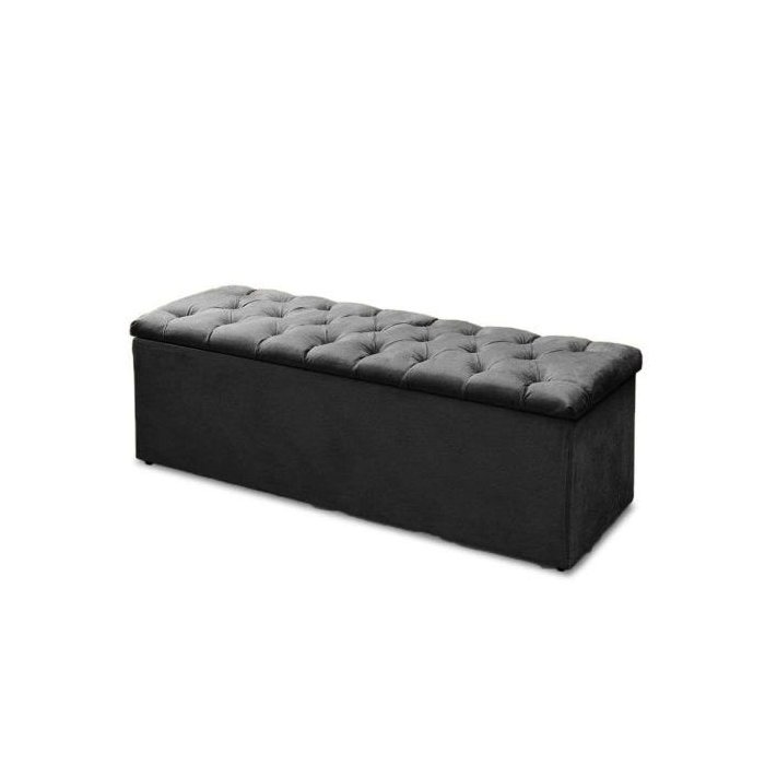 Baú Recamier Queen Suede Preto 47x158x51