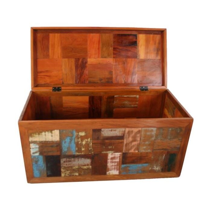 Baú Retalho Em Madeira Maciça De Demolição Medindo 1,00x45x50 - Baú Colorido Baú Colorido