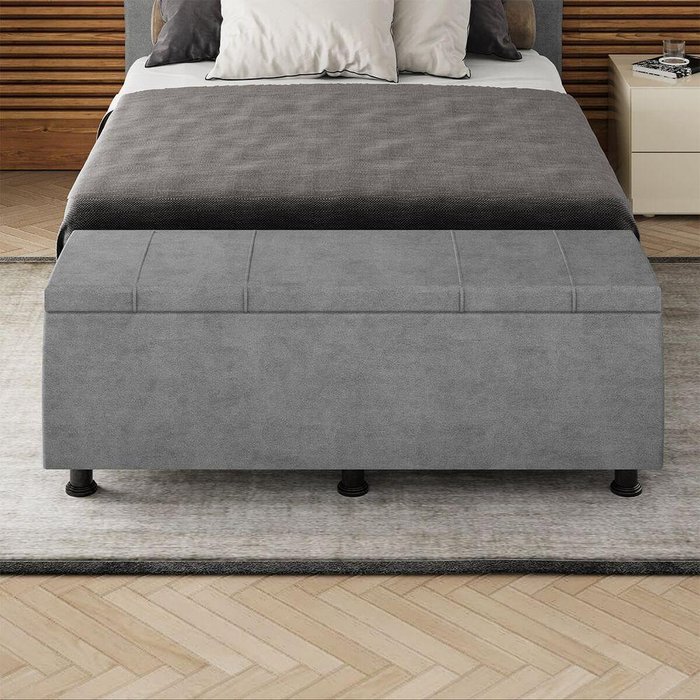 Baú Sapateira Estofada Casal 140 Cm Venus Veludo Skybox Cor Cinza
