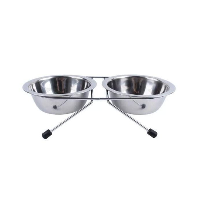Comedouro duplo aço inox com suporte para cães e gatos 2x 150ml