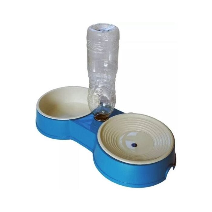 Bebedouro Comedouro Para Cães e Gatos Suporte Para Garrafa - Azul