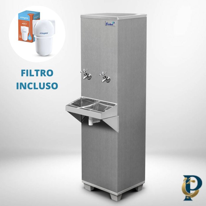 BEBEDOURO DE ÁGUA INDUSTRIAL 25L COLUNA COM FILTRO FRISBEL - AÇO ESCOVADO 25 C Aço Escovado 2 JATO 2