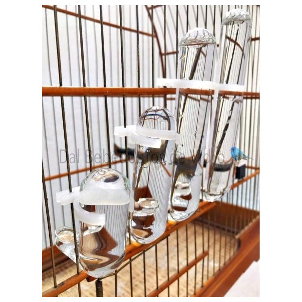 - Bebedouro de vidro fino para gaiola malha fina e malha larga