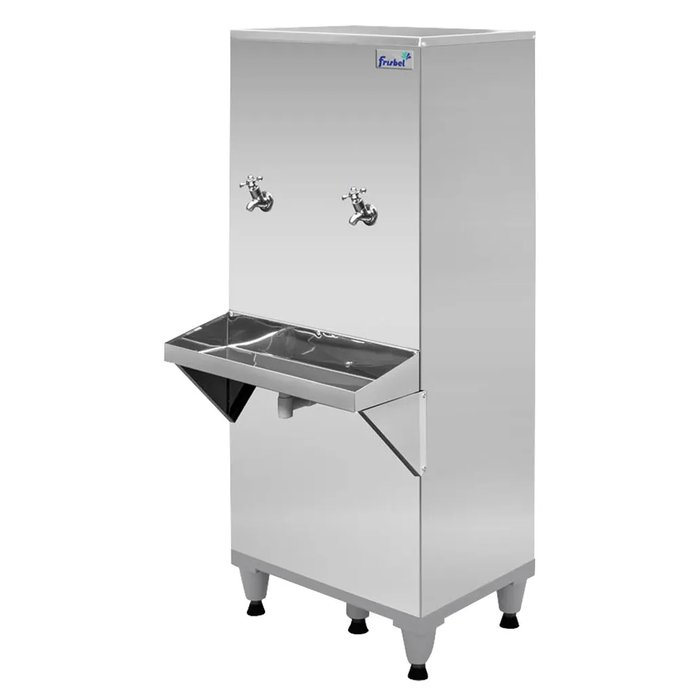 O Bebedouro Frisbel 50 litros Inox 2 torneiras, é Indicado para refrigeração e fornecimento de água, desenvolvido para atender locais com médio fluxo e concentração de pessoas.