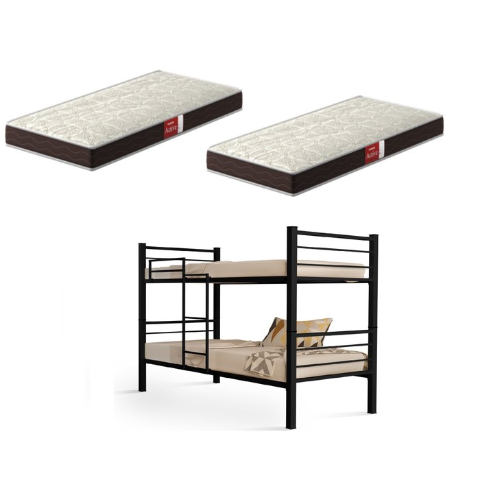 Beliche 100% Ferro/aço Cristal Vira 2 Camas C/grade Proteção e Escada + 2 Colchões D-23 -pelmex -pre