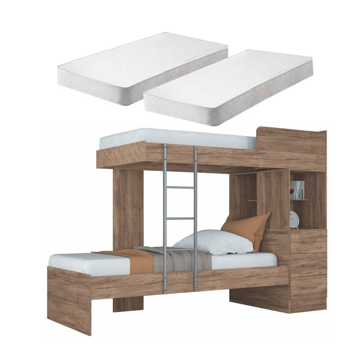 Beliche 3 Gavetas Melo Atacama com 2 Colchões