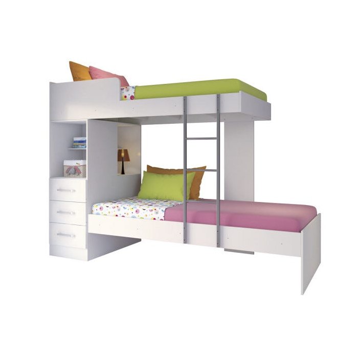 A beliche também pode ter escrivaninha, gavetas e prateleiras embutidas para armazenamento extra.
