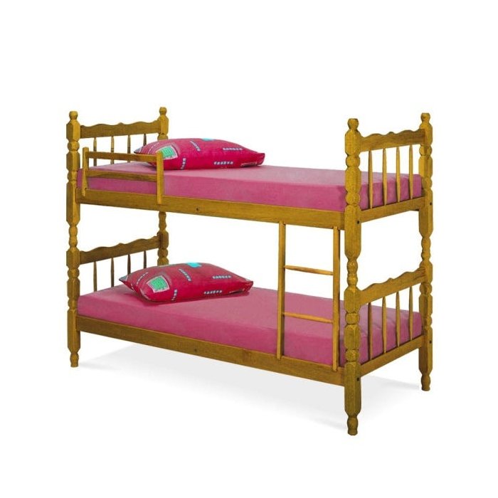 A belíssima Beliche Torneada é perfeita para deixar seu quarto mais bonito, confortável e aconchegante. Ideal para colchão 78x188, possui escada e 1 grade de proteção na cama de cima. Produzida com material de alta qualidade em madeira maciça pinus, com acabamento em verniz, garantindo qualidade, durabilidade e resistência ao móvel.