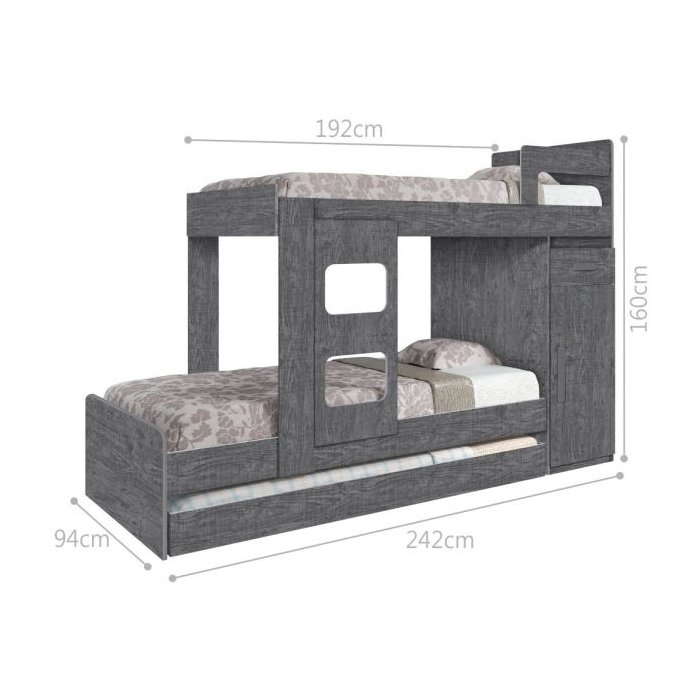 Beliche Armário Nicole Cinza com Auxiliar e Colchões de 78cm e 88cm