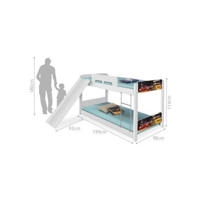 Informações do produto: Altura: 114 cm Largura : 98 cm Comprimento: 199 cm Material: MDF Ideal para colchões de: 88 cm x 188 cm - solteiro (colchão não incluso) Garantia: 3 meses contra defeito de fabricação. Peso máximo suportado: 100 kg por cama. Informações adicionais: - Verifique o tamanho e os detalhes do produto antes de realizar a compra. - As fotos são meramente ilustrativa. - A transportadora entregará o produto no portão e/ou portaria da residência, ou ainda, somente no andar térreo, em caso de prédios, do endereço de entrega. - Avaliar a mercadoria no ato do recebimento e recusar em caso de divergência ou avarias. - Não nos responsabilizamos pela montagem e desmontagem do produto no ato da entrega e devolução, assim como os custos gerados nestas situações. - Sugerimos a contratação de um montador profissional para a montagem do produto. Não nos responsabilizamos por avarias causadas no ato da montagem.