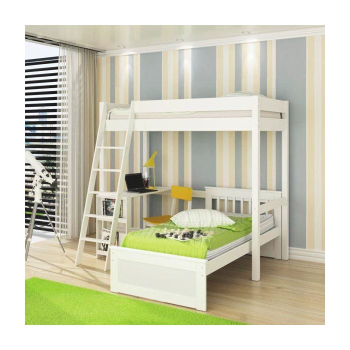A linda beliche com escrivaninha vai deixar o quarto do seu filho muito moderno e singular. Camas de qualidade produzido em madeira maciça, escrivaninha em MDF/Pinus e acabamento em laca branco, que preserva as características naturais, é possível ver levemente os veios da madeira. Esse belo móvel vai otimizar o ambiente, permitir noites agradáveis, momentos de estudo e diversão.