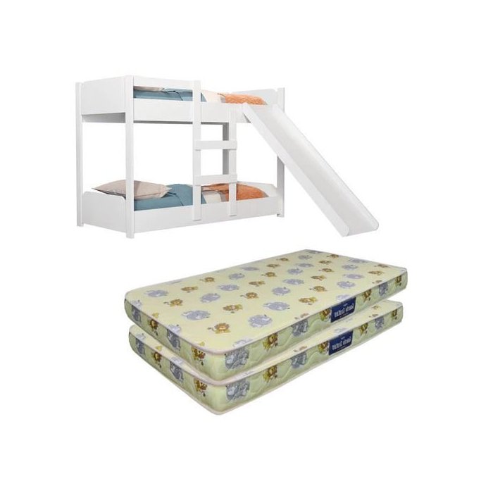 Beliche Flora Infantil com Escorregador e 2 Colchões Infantil 1,50 Cor Branco
