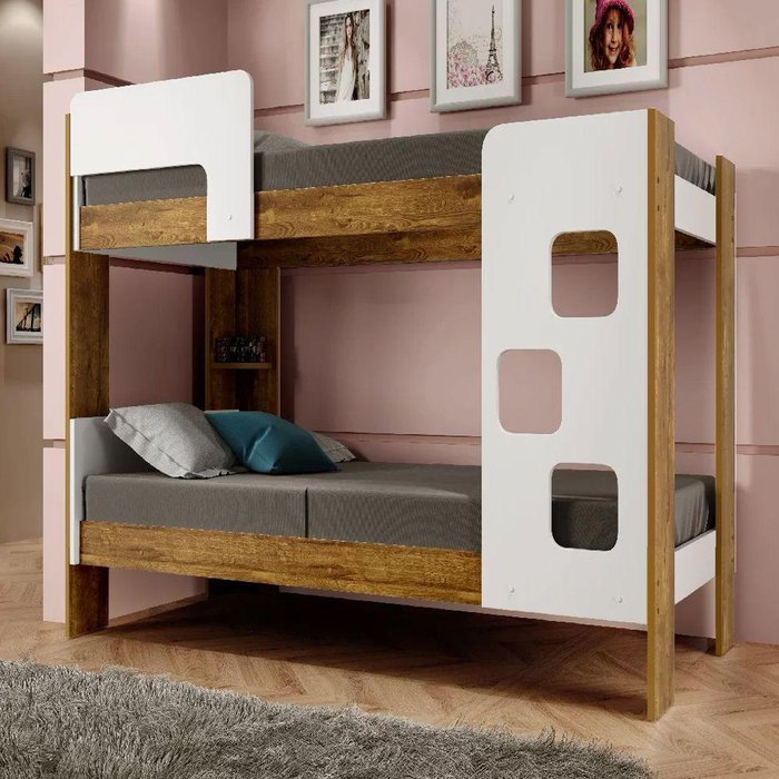 O Beliche Infantil Texas oferece uma solução prática e elegante para otimizar o espaço no quarto das crianças. Equipado com uma escada para facilitar o acesso à cama superior e uma proteção lateral para garantir a segurança durante o sono, este beliche é projetado com o conforto e a segurança das crianças na mente. Além disso, possui uma prateleira embutida, proporcionando espaço adicional para guardar livros, brinquedos ou objetos decorativos. Características Tipo: Beliche infantil Modelo: Texas Cor: Branco e amadeirado DIMENSÕES DO PRODUTO Altura: 148cm Largura: 98cm Comprimento: 197,5cm ATENÇÃO AS IMAGENS SÃO MERAMENTE ILUSTRATIVAS E PODEM SOFRER VARIAÇÕES DE COR E PEQUENOS DETALHES DE ACORDO COM O SEU MONITOR, ILUMINAÇÃO DO AMBIENTE E ATÉ MESMO A SUA PERCEPÇÃO VISUAL.Beliche Infantil Texas com Escada Proteção Lateral e Prateleira Design - Branco/amadeirado
