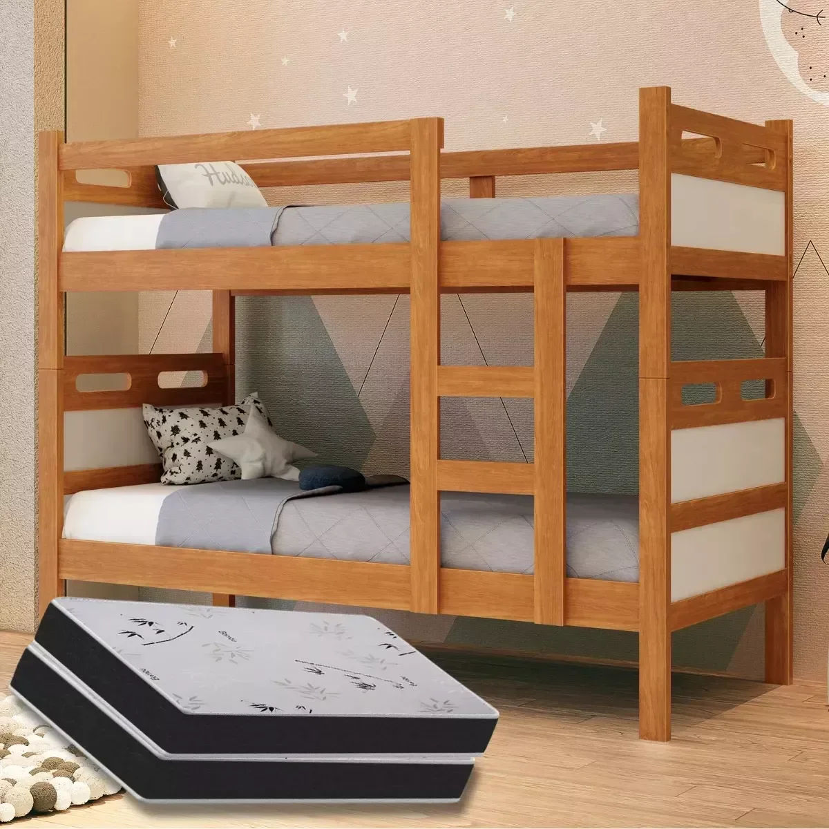 Para ver o valor clique em "Ver formas de entrega". OBS. NÃO ENTREGAMOS NA ZONAL RURAL. Pensando na melhor forma de atender nossos clientes, criamos KITS com colchões de todas as densidades. Recomendações: D20 - colchão macio, D28 - colchão médio, D33 - colchão firme. Confira nossos anúncios, se não encontrar nos envie uma pergunta que encaminhamos o link do modelo desejado. Beliche Barreto Duas Camas com 2 Colchões D28 Gold. *2 Colchões D28 Sensor inclusos. Marca de renome no mercado de colchões. *Beliche e Colchões de excelente qualidade. Beliche firme que passa segurança, suporta tranquilamente 100 kg em cada cama sem impacto. *Acompanha 2 colchões D28 Gold Sensor, estão entre os melhores do mercado, colchão firminho, gostoso de dormir, feito em 100% em espuma premium importada, confortável e de excelente durabilidade. (88x188x12) A Beliche também pode virar duas camas de solteiro, podendo assim dividir as camas no momento que achar necessário. CARACTERÍSTICAS - Suporta 100 Kg em cada cama. - Altura total: 156cm. - Largura total: 94cm. - Pés com protetor de umidade. - Estrado em madeira, com 5 ripas e 5 travessas cada um. - Acompanha manual com instruções simples e intuitivo. 3 meses de Garantia