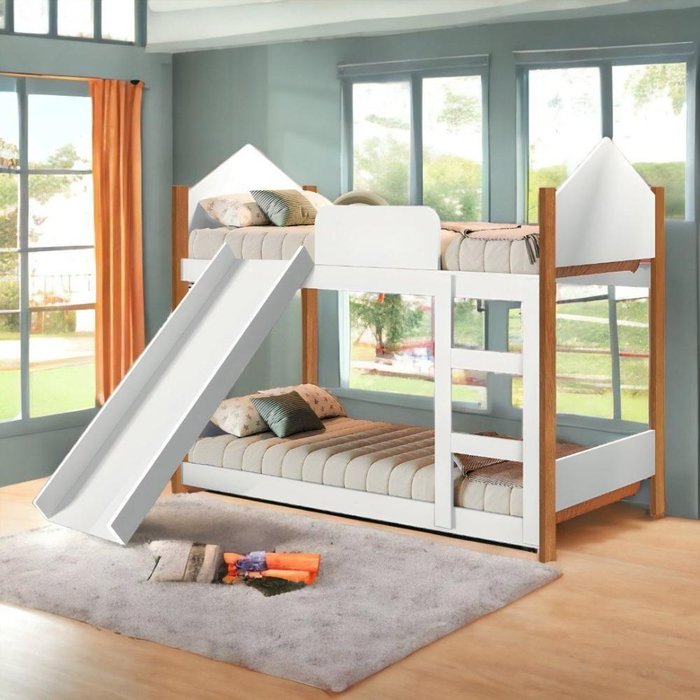 Beliche Magia Branca E Nature Com Escorregador E 02 Colchões Gabrielli