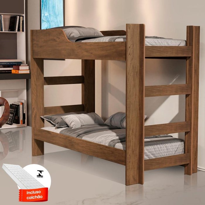 Beliche Moderna Com Escada Dupla E Dois Colchões Castanho Alba Basoto