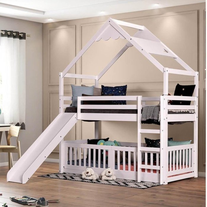 Beliche Montessoriana Divertida com Escorregador e Telhado Inclinado Lua Casatema MadeiraOriginals Branco