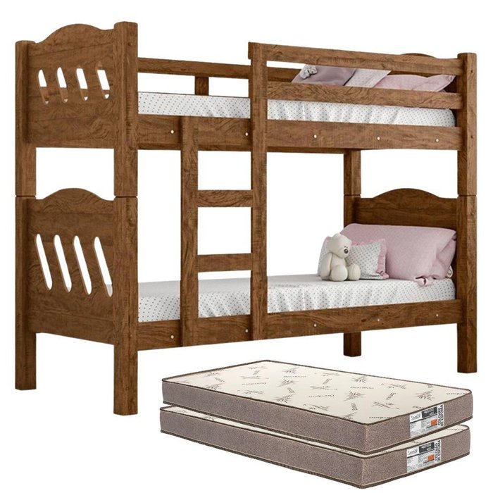OBS: NÃO ENTREGAMOS NA ZONA RURAL. Faturamento imediato. Beliche Reforçada Solteiro MDF Pérola na cor: Castanho - Produto de excelente qualidade com estrutura em MDF e estrado em madeira maciça, acompanha 2 colchões de espuma com densidade D33 Gold. A beliche pode ser utilizada como duas camas de solteiro. Com grade inteira em um dos lados e escada fixada. Linda e robusta só esperando por vc:). - Estrado em Madeira. - Pés com 7,5cm x 7,5 cm com protetor de umidade. - Barras laterais de MDF. - Ripas em MDF. - Grade Protetora e Escada fixada com parafusos. - Vira duas camas. - Altura: 162,5cm. - Largura: 98,2cm. - Comprimento: 205cm. - Montagem não inclusa. - Garantia de 3 meses. - Peso suportado por cama: 100 kg. - Limpeza com pano úmido e água sem utilizar produtos químicos. - 2 Colchões Espuma D33. Suporta pessoas de até 100 kg. - 188 x 88x 12 cm. - Liso com estampas variadas(produto pode ir diferente da foto, devido variação nas estampas).