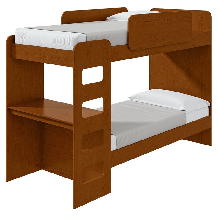 A beliche também pode ter escrivaninha, gavetas e prateleiras embutidas para armazenamento extra.