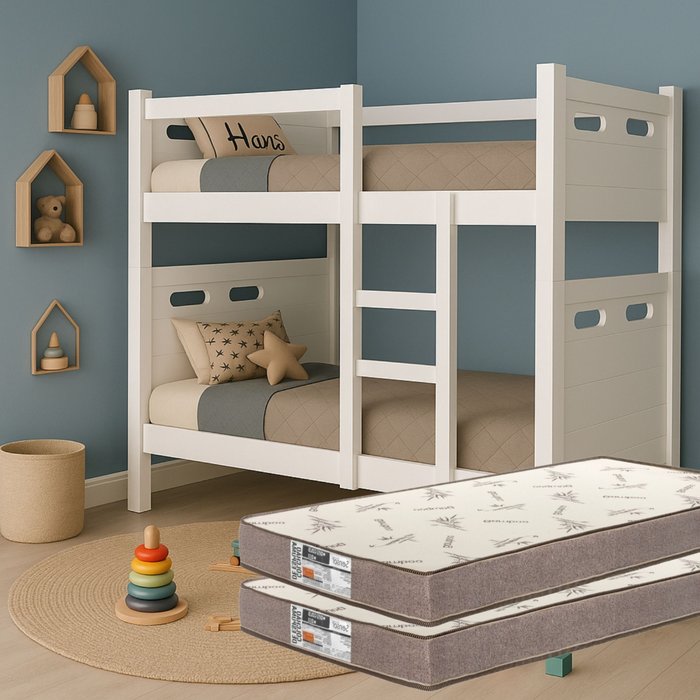 --Itens inclusos: 01 (uma) beliche, 02 (dois) colchões densidade D33, manual de montagem, parafusos e peças para acabamento.