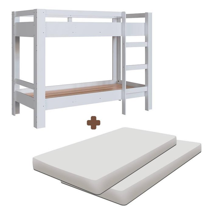 Beliche Solteiro com 2 Colchões Branco Hans Shop Jm