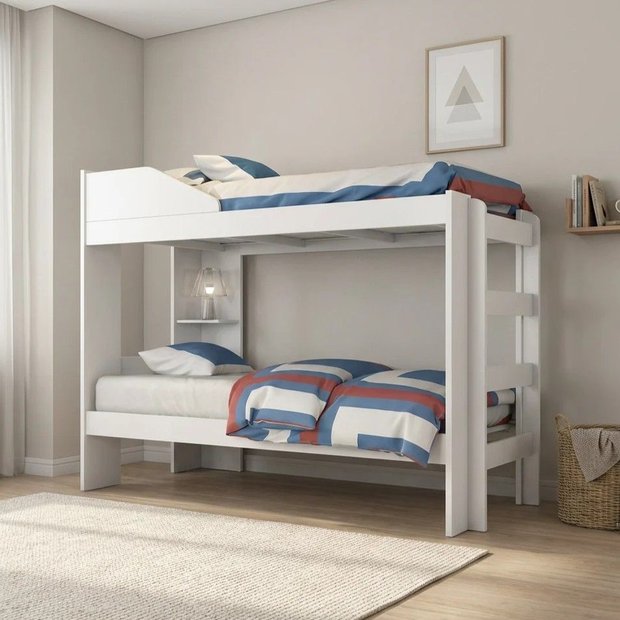 - Design Inteligente: Com um design moderno e linhas retas, este beliche se integra harmoniosamente a diferentes decorações. Além disso, conta com uma prática prateleira para objetos na cama inferior, perfeita para apoiar livros, um despertador ou itens pessoais.