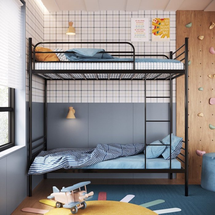 Beliche Solteiro em Ferro James 201cm X 190cm 96cm Preto