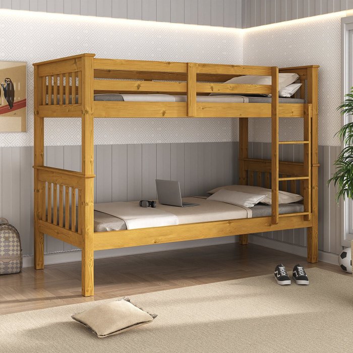 Beliche Solteiro tem um design moderno e destina-se para publico infantil/adolescente ideal para otimizar o espaço do quarto. Estrutura em madeira de pínus maciça, madeira proveniente de reflorestamento, com escada fixa proporcionando maior segurança.
