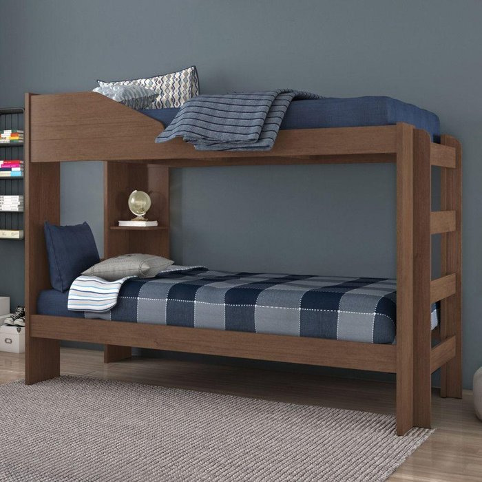 A Beliche Indy e fabricada com material MDF e MDP. A cama superior e acessivel atraves de uma escada fixa, que e integrada a estrutura da beliche e planejada para ser segura e facil de usar. O produto e uma excelente escolha para quem procura uma solucao de cama pratica, confortavel e segura para dois usuarios.