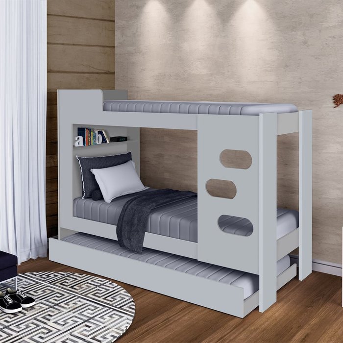 Beliche Solteiro para Colchão de 88x188cm com Auxiliar 100% Mdf Floripa Cinza J&a Móveis