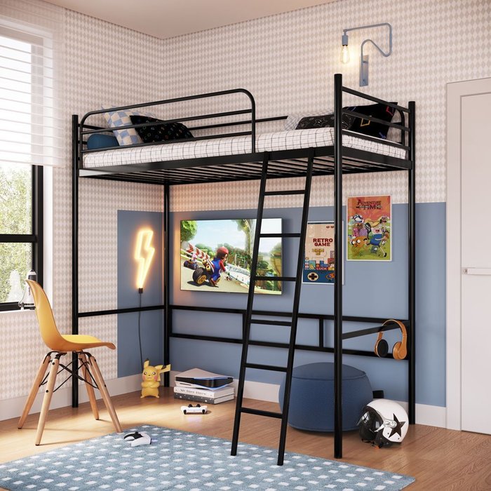 Nosso beliche Nick foi desenvolvido para você que precisa otimizar seu espaço. Por ser uma cama suspensa você pode utilizar a parte inferior como área de estudo ou de trabalho, tornando assim seu ambiente mais versátil.