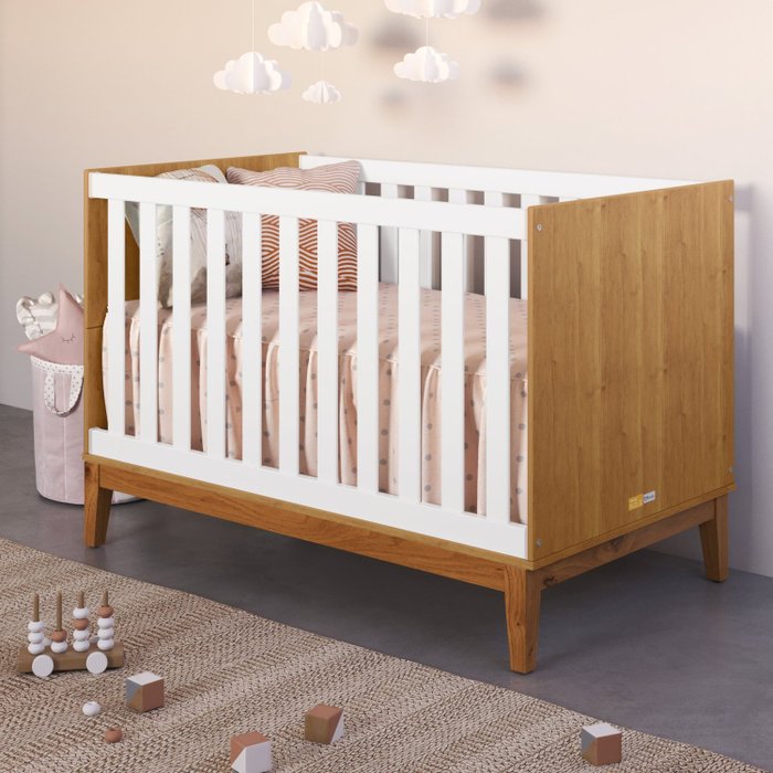 Berço 2 em 1 Unique Matic Freijó/Branco Soft/Eco Wood