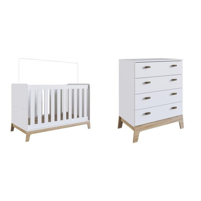 Berço 3 em 1 Branco com Colchão + Cômoda/trocador