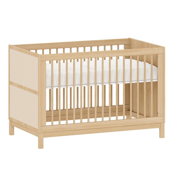• Ratan na cor palha natural aplicado nas duas cabeceiras do berço;