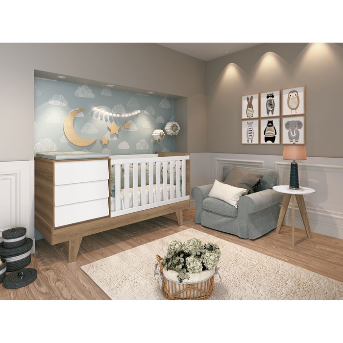Conta com um trocador que pode se transformar em cômoda, e além disso o berço que pode se transformar em cama, é a escolha ideal para tornar o dia dos papais mais práticos e o sono de seus filhos mais seguros.