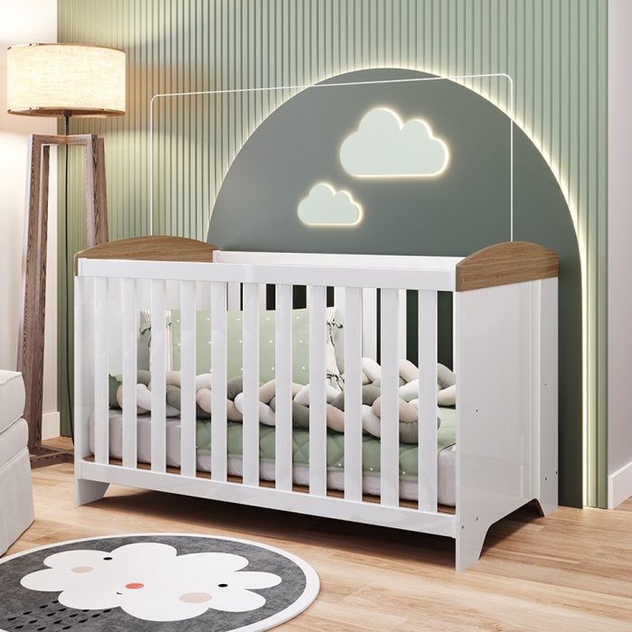 Berço Americano 100% MDF Ayla Branco/Carvalho