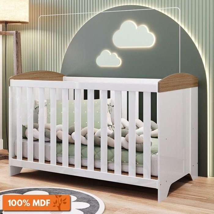 Berço Americano 100% Mdf com Regulagem de Altura Lino Móveis Peroba Branco Brilho/carvalho