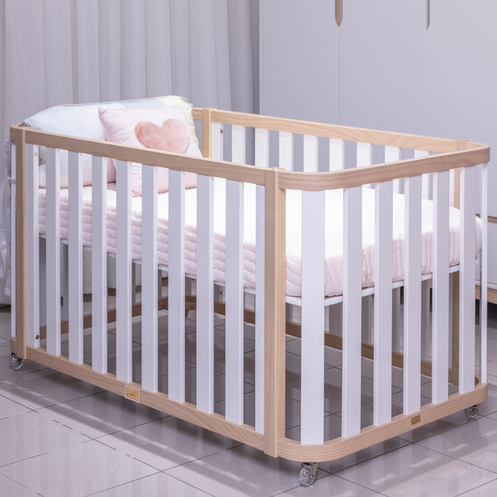 Berço Americano 2 em 1 Loop Branco e Carvalho Malva com Rodinhas
