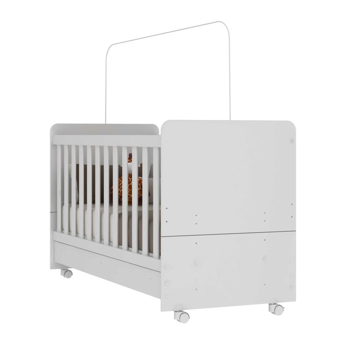 Berço Americano 3x1 com Colchão Incluso e Rodízios Pimpolho Multimóveis FG3568 Branco Branco