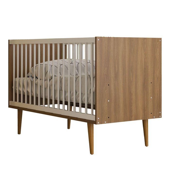 Berço Americano 66cmx133cm Infantil para Quarto Bebê Encanto Batrol Nogal-bco Nogal/Branco